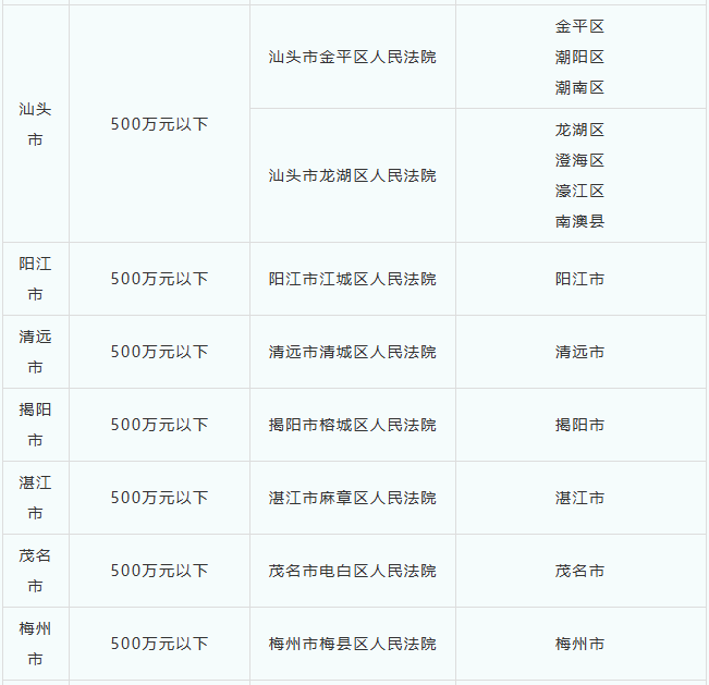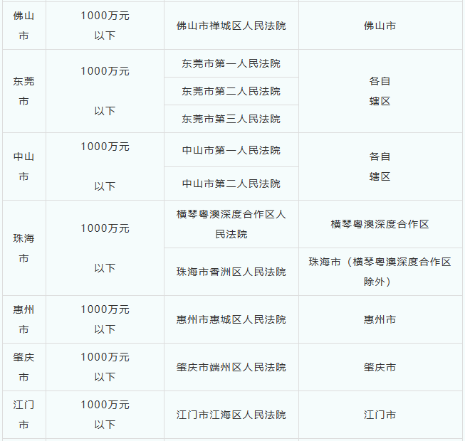 其中,广东省基层人民法院管辖第一审知识产权民事、行政案件有关事项如下: