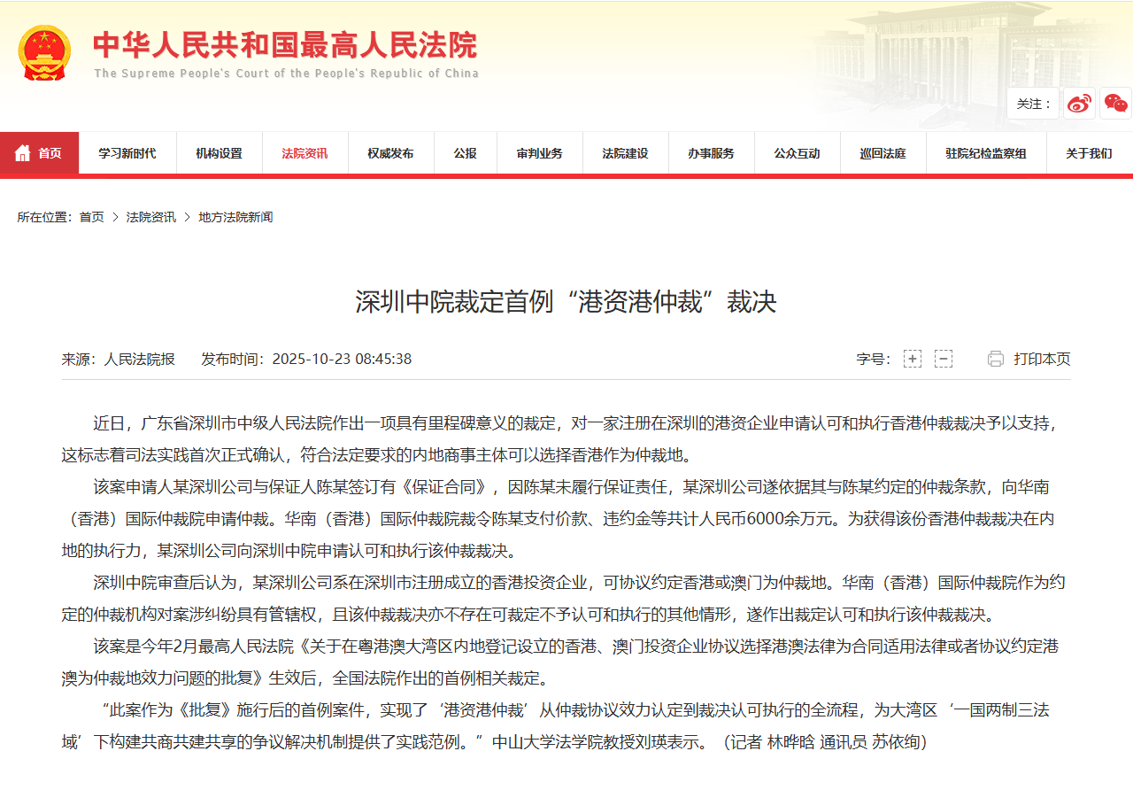 随着深圳中院这一纸裁定的生效,“港资港仲裁”机制已经完成了从规则突破到实践落地的全过程。这一进展清除了港澳资企业在选择仲裁地时面临的法律困难与障碍,为粤港澳大湾区构建国际化、法治化的营商环境奠定了坚实的法律基础。