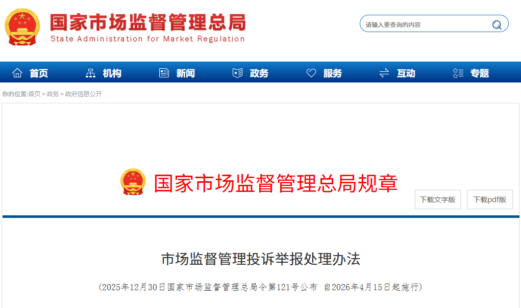 (2025年12月30日国家市场监督管理总局令第121号公布 自2026年4月15日起施行)